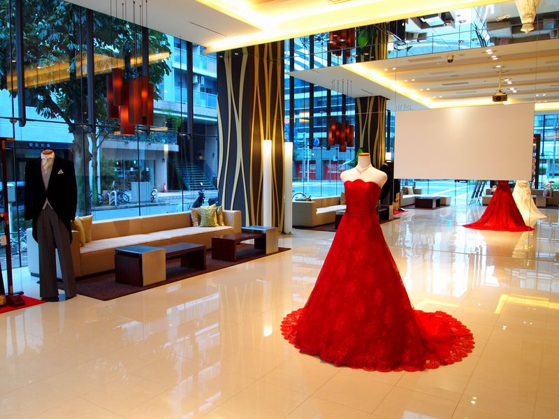 昨日はこんなステキな赤いカラードレスが飾ってありました。