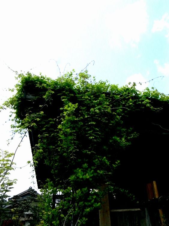 お店の屋根も緑が生い茂ってきました。