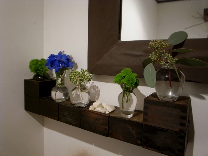 鏡でお花が似合うかチェックしてみました。