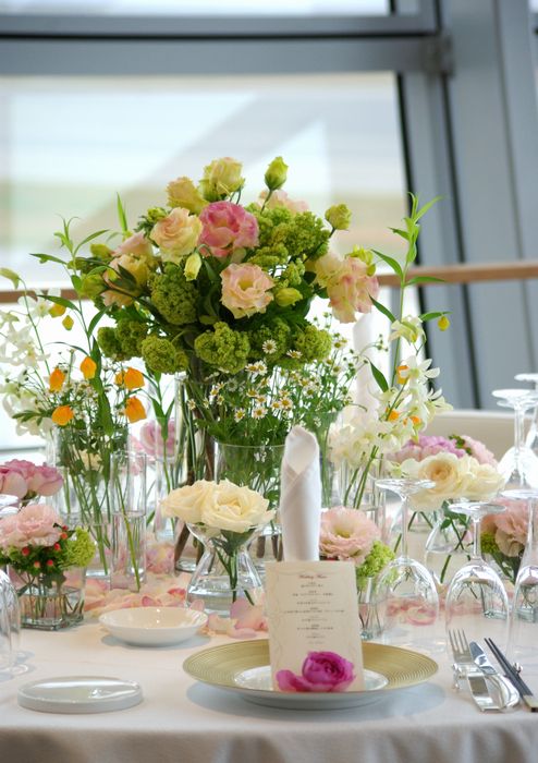 披露宴メインのお花も白と緑でした。