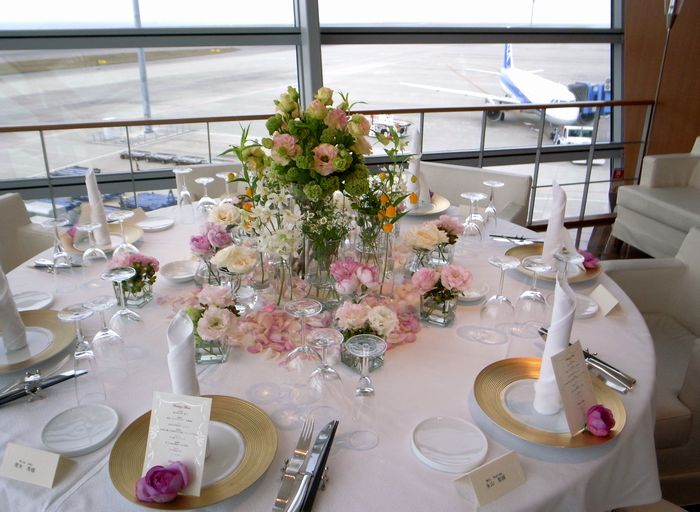 間近に飛行機が見えるVIPルームでお食事会。